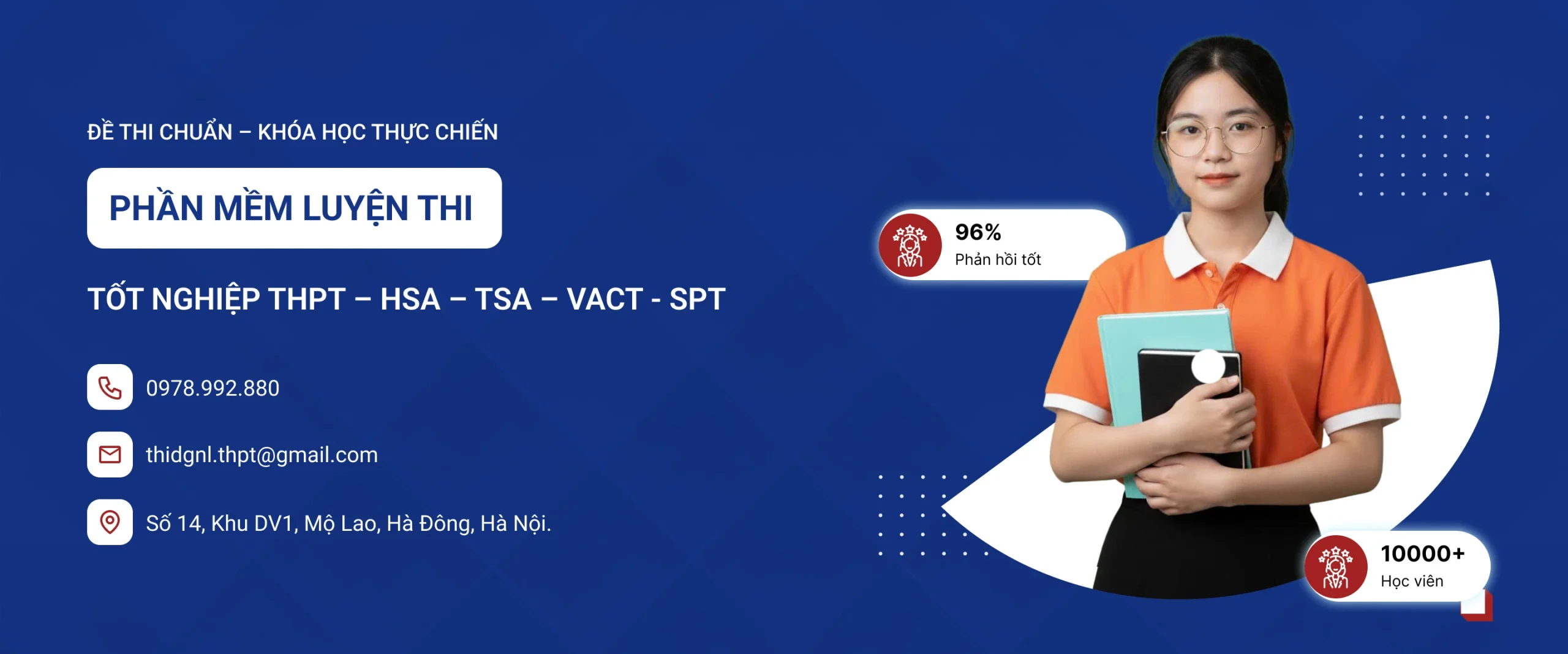 Sứ mệnh của ThiĐGNL.edu.vn là xây dựng nền tảng luyện thi trực tuyến hiện đại, giúp học sinh THPT chinh phục kỳ thi Tốt nghiệp THPT và Đánh giá năng lực HSA, TSA, V-ACT, SPT với điểm số cao nhất để vào đại học mơ ước.